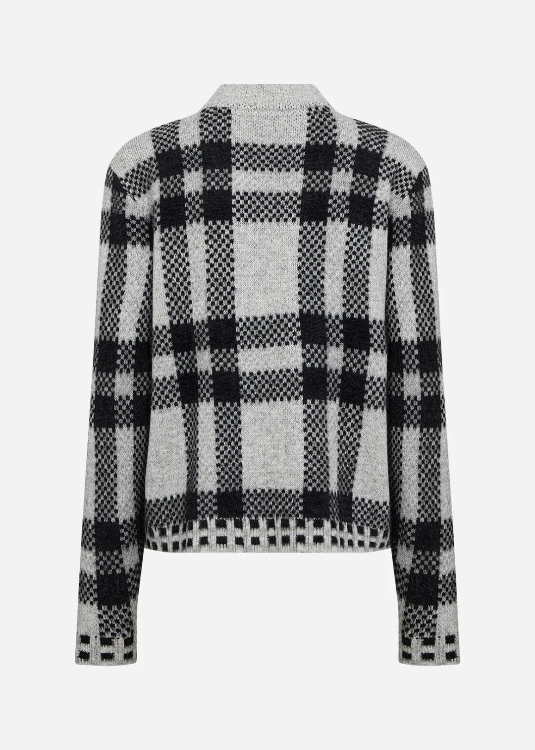 SC-VIBSA1 Pullover is crafted from a blend of 50% Polyester and 50% Nylon. It features a classic crew neck with a bold checkered pattern and ribbed trims.
