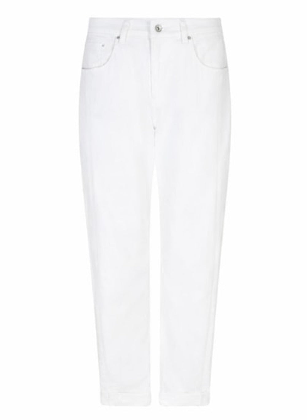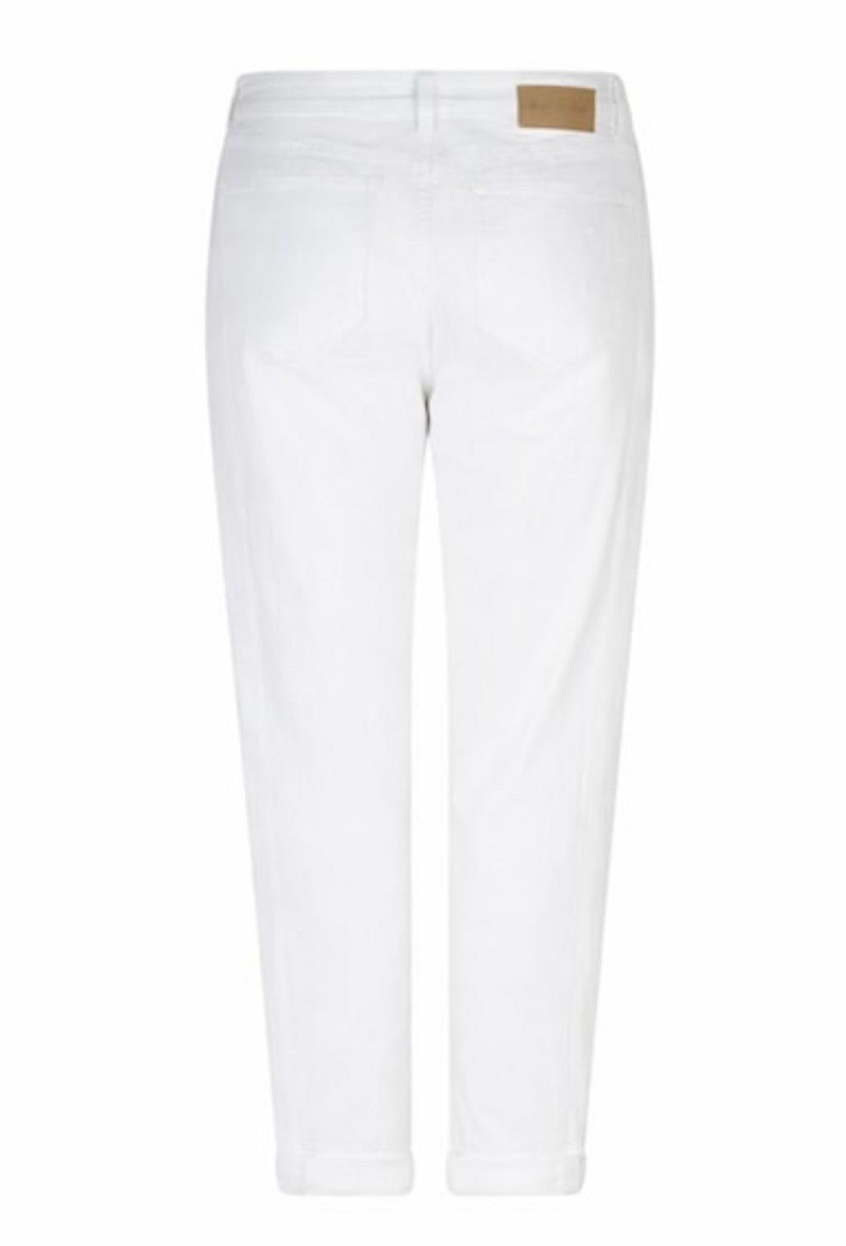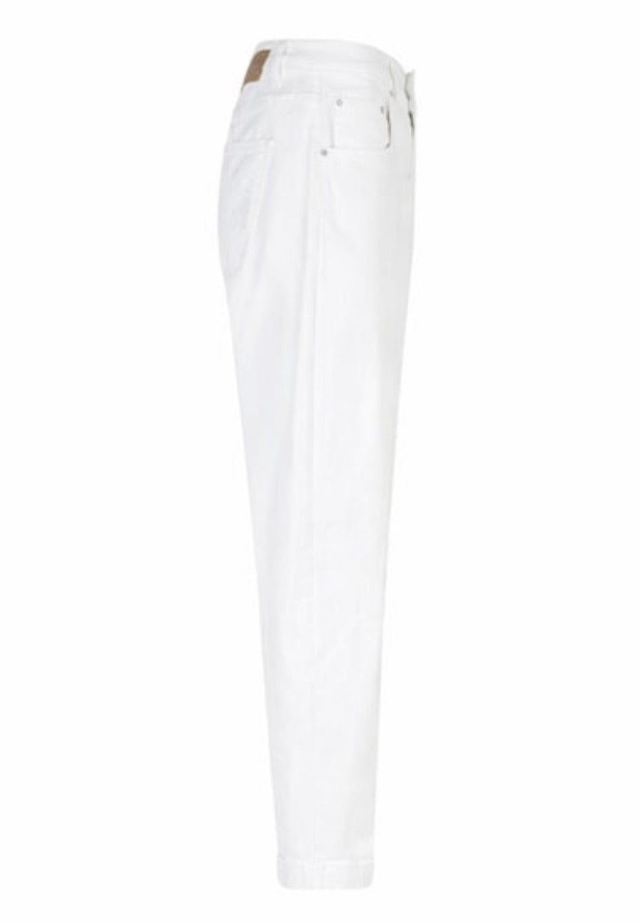 The Red Button Caitlina Sidepatch white jeans (Style 4905) are a contemporary, barrel-leg style designed for a relaxed yet structured look. They are characterized by a high-rise waist and a slightly loose fit through the leg that tapers subtly toward the ankle.