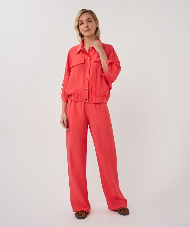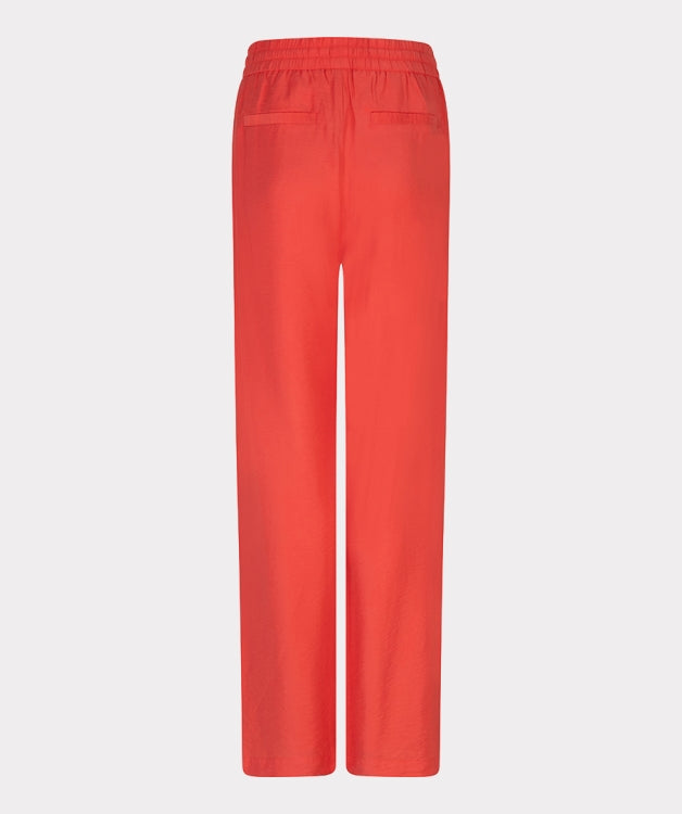 Smooth-fitting trousers with an elastic waistband, drawstring, front slit pockets, and faux piped pockets at the back. The trousers are made from 75% Tencel, 13% nylon, and 12% polyester. Wear the trousers with the matching jacket for a complete set.