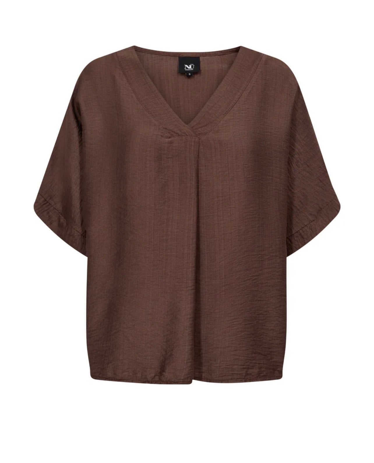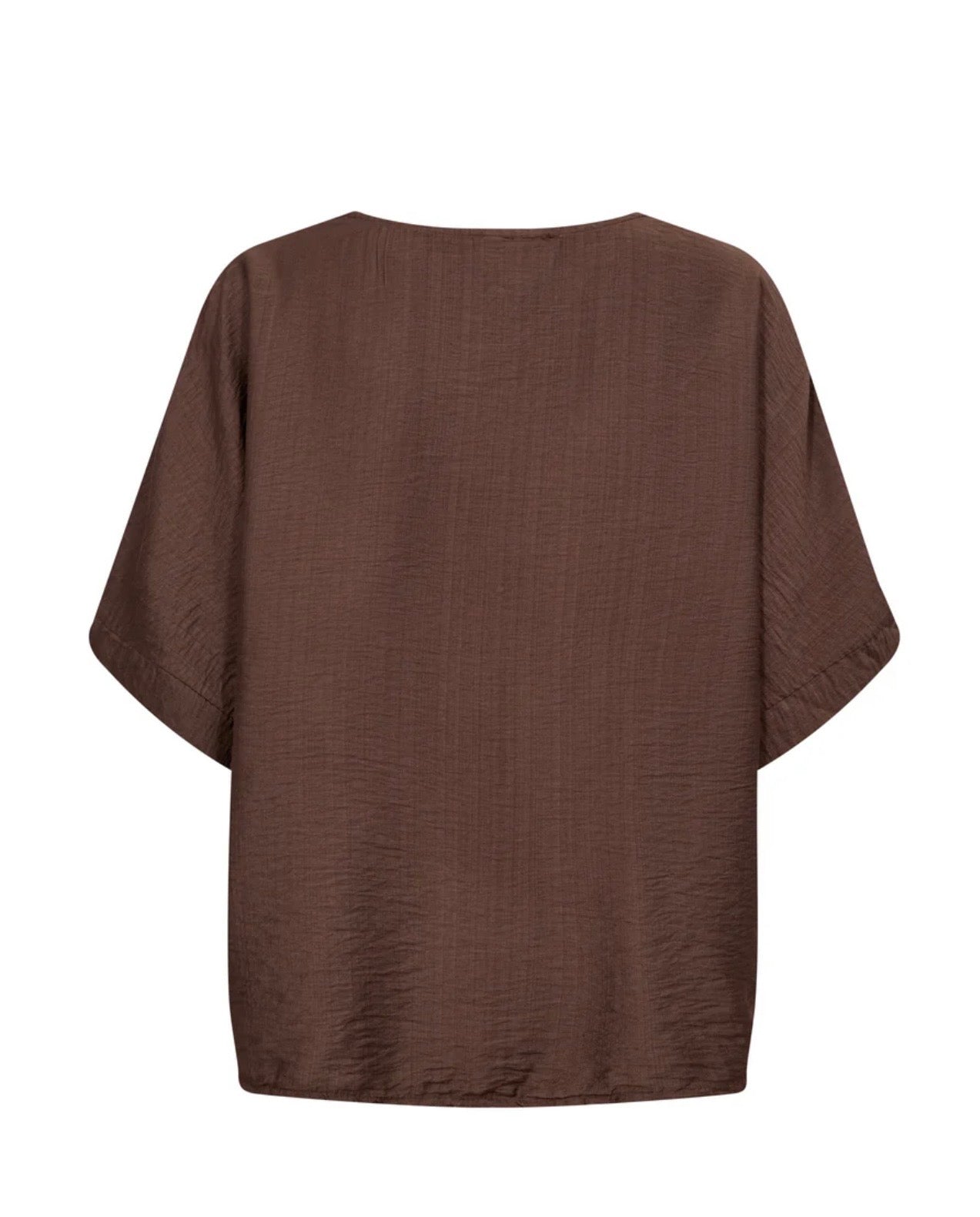 This airy blouse combines comfort and simplicity with its lightly structured material and relaxed fit. It features short, loose-fitting sleeves and a V-neckline with a decorative fold in the front, adding a soft focal point to the design. The wide sleeve edge gives the blouse a subtle lift and rounds off the relaxed look.
