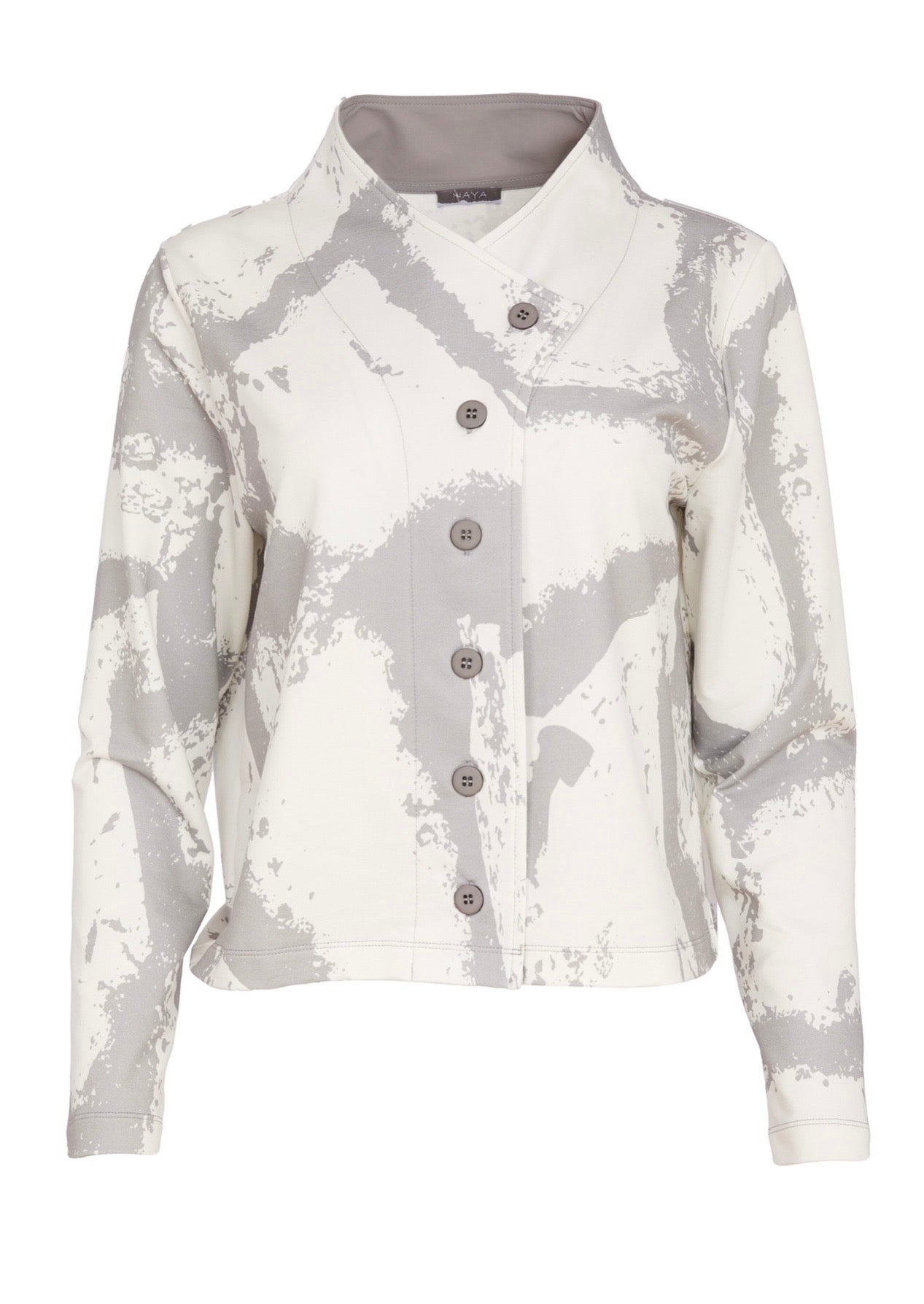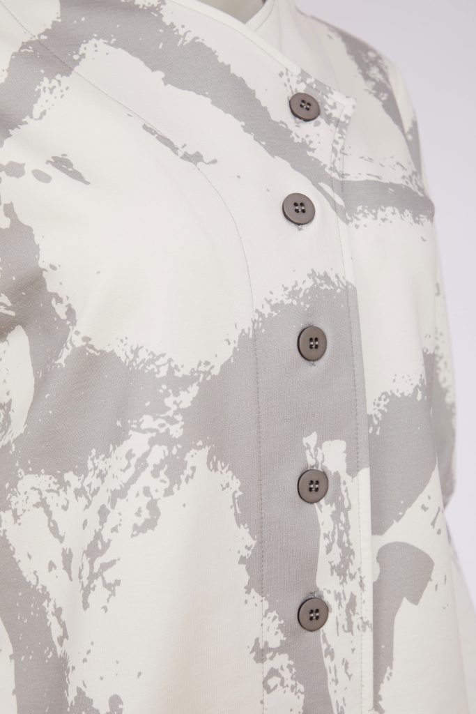 NAYA take a button through jersey top and create a design classic. The neckline crosses over with to one side, sealed with a singular button. The sleeves are full length, the cut is clean. Lastly the abstract print dances across the full piece to display signature originality. #NAYA #NAYASTOCKIST #NAYAIRELAND #IRISHDESIGN