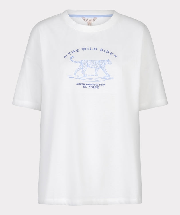 T-shirt with panther print and embroidered text. The top is made from 100% cotton