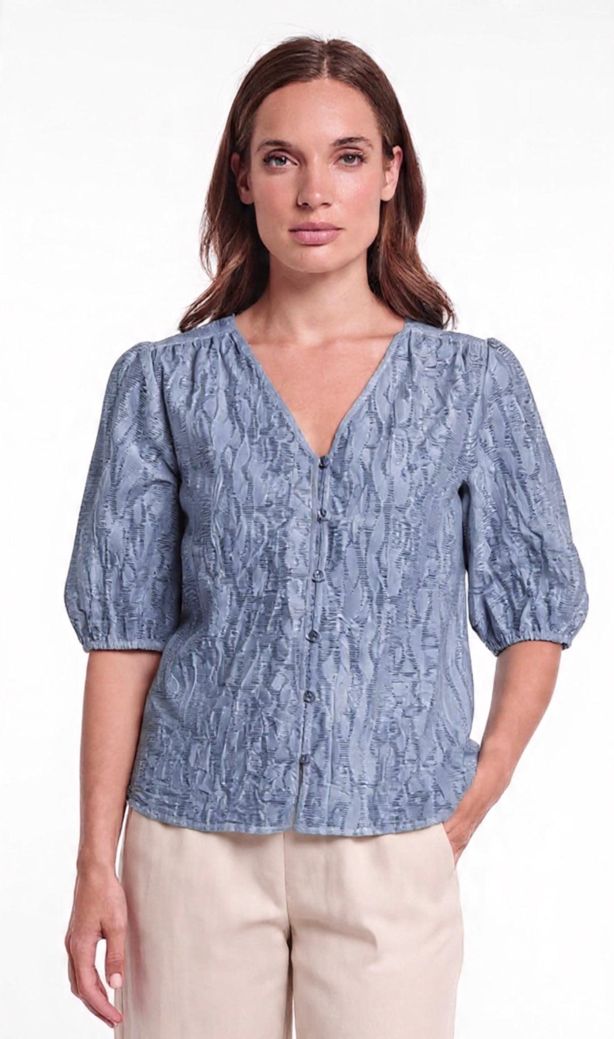 Half sleeve blouse with V-neck in a Brushed blue colour